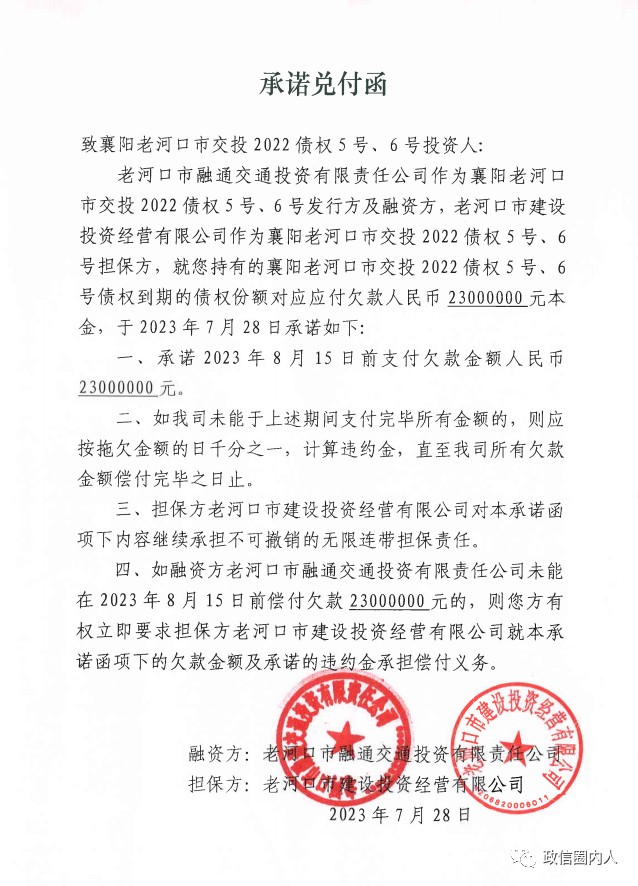 近日,记者独家获悉,青州市城投生态环境工程有限公司一笔总规模为2.341亿元的非标融资出现违约。根据资料,2021年3月8日,平安信托与青州市城投生态环境工程有限公司(下文简称“融资公司”)签订信托贷款合同,贷款年利率为10.5%,当年3月31日,平安信托福贵96号集合信托计划成立,累计发放信托贷款本金 2.341 亿元。对这笔贷款,青州市城市建设投资开发有限公司(下文简称“青州建投”)和青州市宏