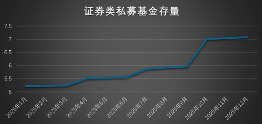 2025年是证券类私募基金大发展的一年,根据中国基金业协会的数据,证券类私募基金规模从年初的5.2万亿提高到了年底的7.08万亿,提高了1.9万亿。