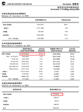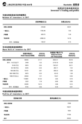 上交所对投资者的统计数据较为详细,他们每年发布的统计年鉴中会披露各类投资者的情况。包括类别、持股市值、市值占比、盈利情况(盈利情况2017年后停止更新),我们尝试在其中找出一些端倪来。