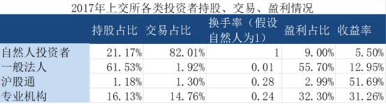 自然人投资者以21.17%的市值占比,贡献了82.01%的交易量,却只在盈利中占比9%,跑输其它所有类型的机构。