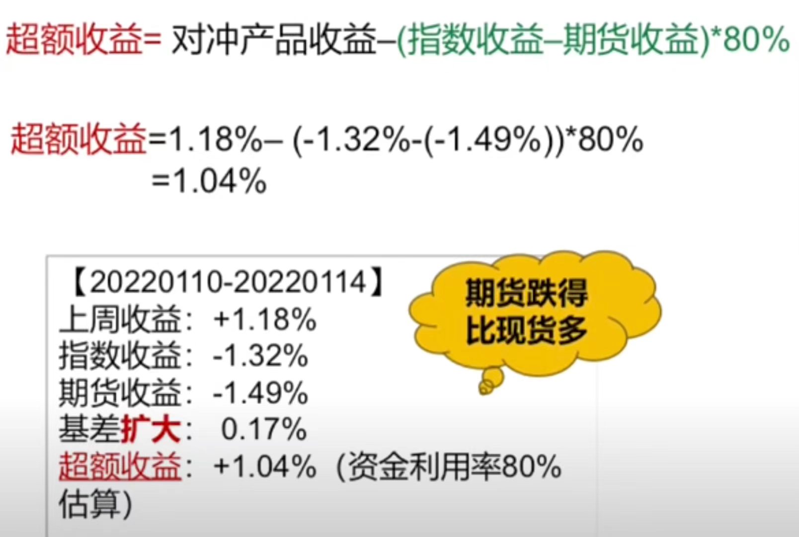 对冲产品收益 =(股票超额收益 α - 对冲成本)× 资金利用率(常规 80%)