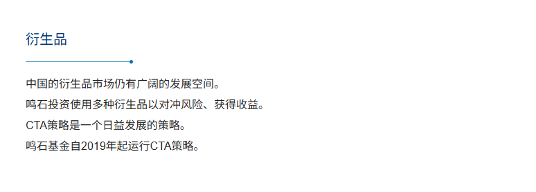 上海鸣石私募基金管理有限公司成立于2010年,业内率先采用“五环多核”的量化流水线式多核心投研模式,打造了因子、人工智能、优化、交易、风控等五个核心投研环节,拥有十三个核心投研团队,多个投研核心可以保证策略研发的持续性和稳定性。鸣石基金是一家致力于为客户提供资产管理服务的专业量化投资机构,其资产管理服务范围包括股票、债券、期货以及其他金融衍生品等。公司在中国证券投资基金业协会登记为私募投资基金管理人(登记编号:P1005659)。公司投研团队实力雄厚,汇聚了一批来自美国宾夕法尼亚大学沃顿商学院等名校,具有资深金融学术背景、掌握前沿金融理论的投研人员,并吸引了AI、计算机、数据等领域的顶级人才,致力于以适合中国市场的量化投资方法为国内投资者寻求稳健的投资收益。