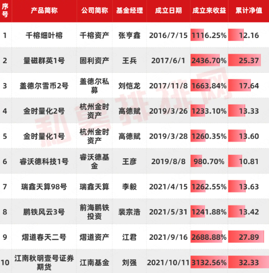 私募“十元基”产品全名单
