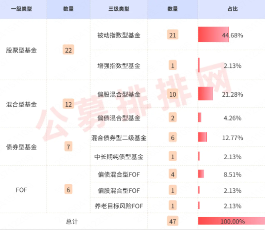从结构来看,权益类基金仍是发行市场主力。在47只待发新基中,权益基金共32只(包括22只股票型基金和10只偏股混合型基金),占总量的68.09%,数量较前一周的23只增长39.13%。