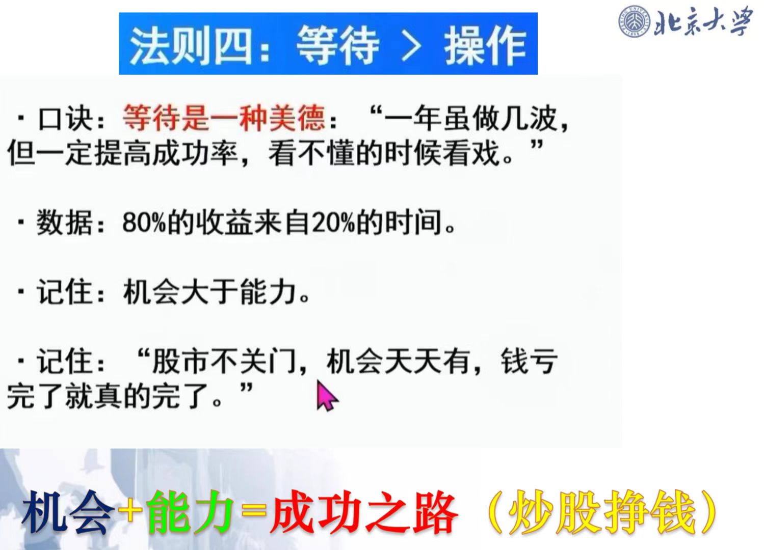 这堂北大教授的 “炒股挣钱” 课,上下两篇全部讲完。它不教你追涨停、不教你抓妖股、不教你一夜暴富。它只教你三件最值钱的事: