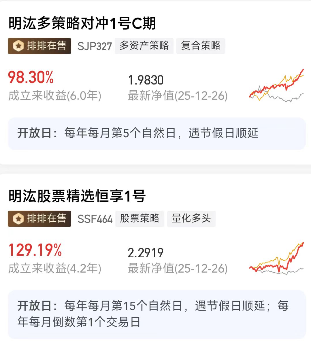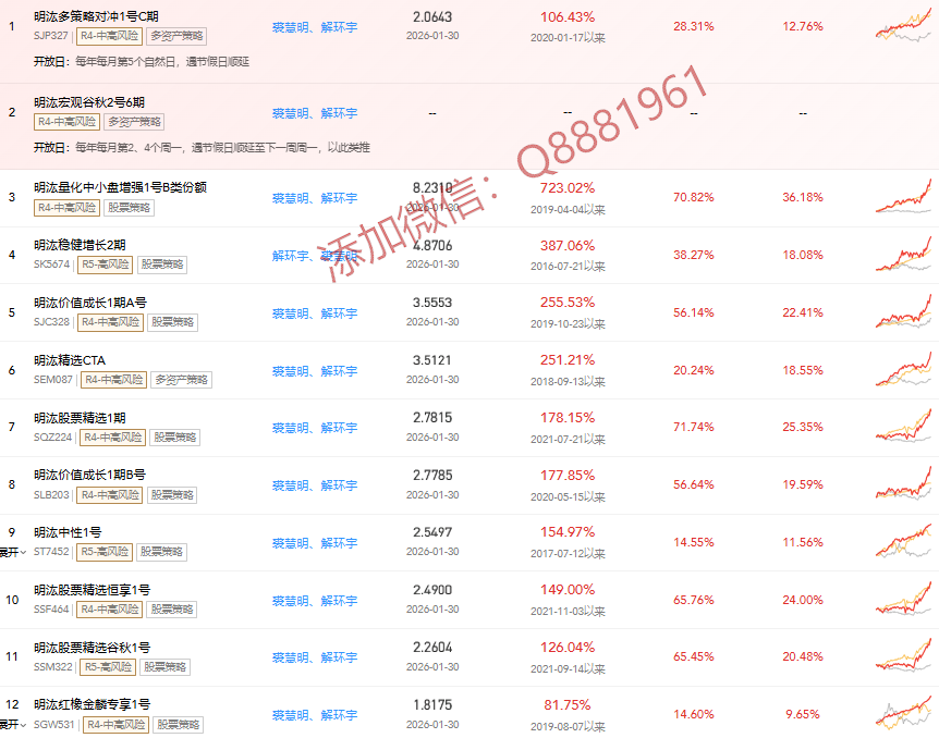 多策略对冲 | 结合选股、套利等,分散风险,2015 年 5 月发行 “明汯多策略对冲 1 号” |