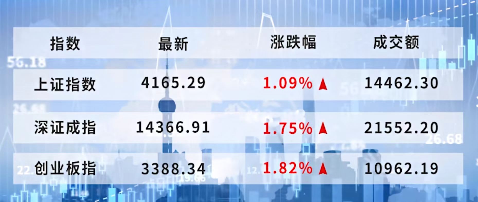 A 股放量大涨:1 月 12 日 A 股三大指数集体上扬,上证指数涨 1.09% 报 4165.29 点,深证成指涨 1.75% 报 14366.91 点,创业板指涨 1.82% 报 3388.34 点;两市成交额达 3.6 万亿元,连续两日突破 3 万亿,刷新 2024 年 10 月以来历史纪录;个股涨多跌少,AIGC、文化传媒等板块领涨。