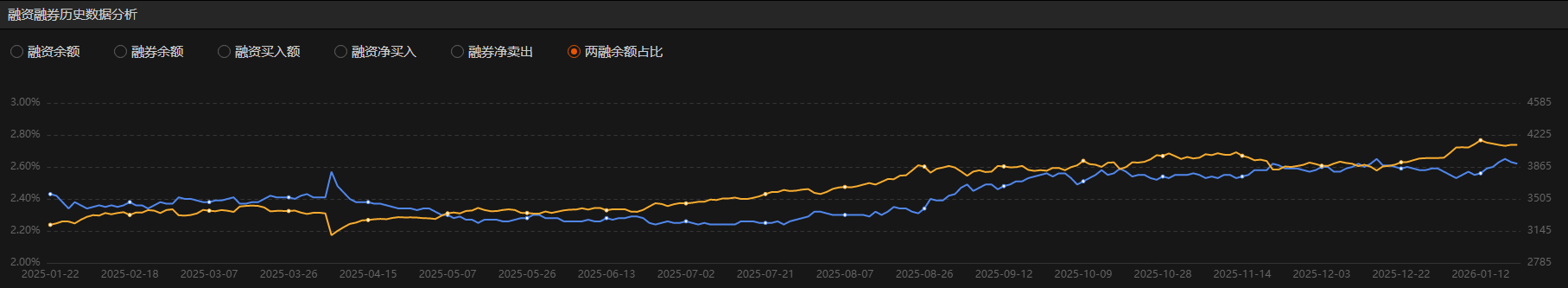 两融余额占 A 股流通市值比:1 月 14 日为 2.60%,1 月 20 日为 2.61%,变化不大,反映出市场杠杆率并未出现剧烈波动,政策的逆周期调节效果温和。