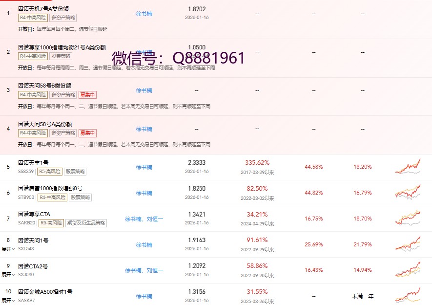 因诺旗下的私募产品(仅限图片展示内容)近一年年总收益均为正,其中最低收益为16.43%,最高收益为44.82%,涵盖多种不同策略的产品,由不同的基金管理人进行管理,年化收益率最高为21.79%,最低为14.94%,想了解更多信息扫描文章下方二维码,了解更多信息。