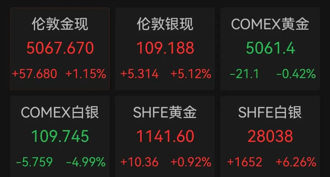 近日,白银期货价格创历史新高。Wind数据显示,COMEX白银期货最高攀升至每盎司117.7美元。北京时间1月27日,白银价格有所回落,COMEX白银期货盘中一度跌超9%,截至11:33,COMEX白银期货跌4.99%,报109.745美元/盎司。