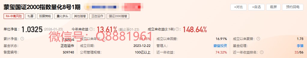 3.1.1产品①-------蒙玺国证2000指数量化8号1期