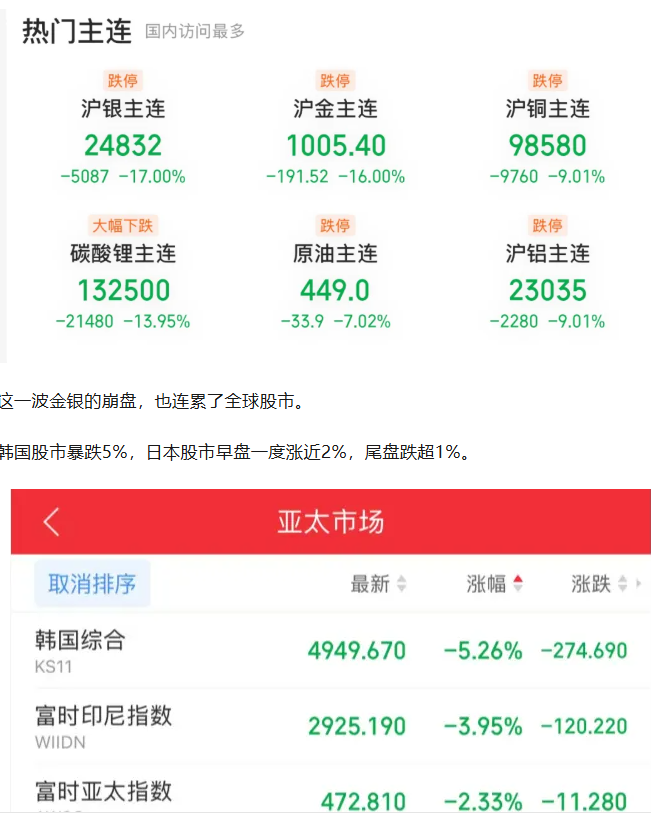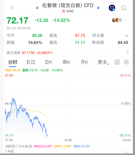 2月2日,贵金属继续崩盘。现货白银一度抹去今年迄今全部涨幅,盘中暴跌14%,黄金暴跌约10%。