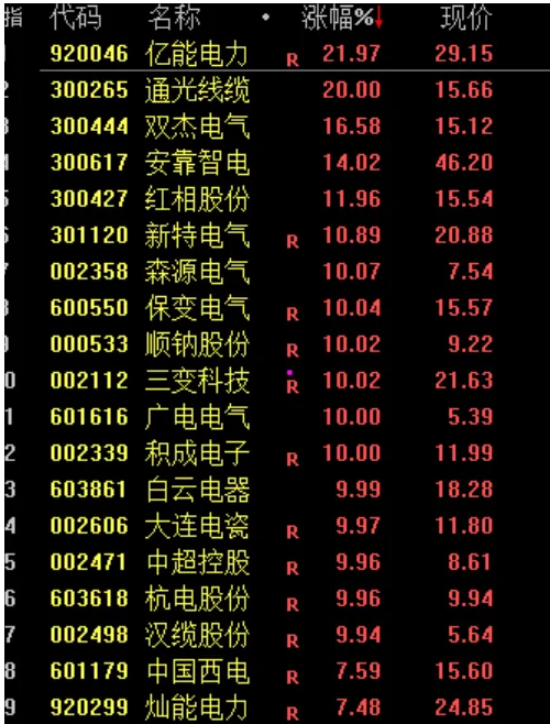 电网设备板块逆市走强,通光线缆、双杰电气等多股涨停。