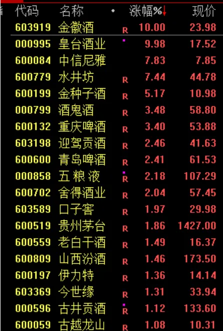 白酒股延续涨势,皇台酒业3连板,金徽酒3天2板。