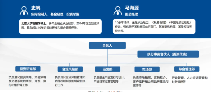 致诚卓远(珠海)投资管理合伙企业(有限合伙)于2017年6月19日成立,于2017年10月25日完成私募基金管理企业登记备案,总部位于云南省昆明市。企业于2017年10月25日通过基金业协会备案,私募投资基金发行人登记号为P1065479。企业与2014年成立的致诚卓远(厦门)投资管理有限公司具有相同的投资团队,专注于以量化投资为主的私募证券投资基金,发行的量化产品主要分为股票阿尔法对冲型和指数加强型两类。以投资总监史帆为核心的企业投研团队成员均为北京大学毕业并有多年金融或投资从业经历,拥有卓越的计算机编程能力、扎实的数理统计建模功底、丰富的金融学理论知识和实践经验,有能力通过对证券市场的科学观测,发现规律,设计计算机算法,构建超越指数表现的股票组合;此外,企业的合规和运营团队成员也具有私募机构合规运营和私募产品募集、成立、备案、运行的丰富经验。