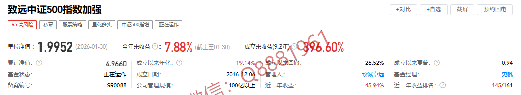 中证500指数加强旗舰产品: 致远中证500指数加强私募基金
