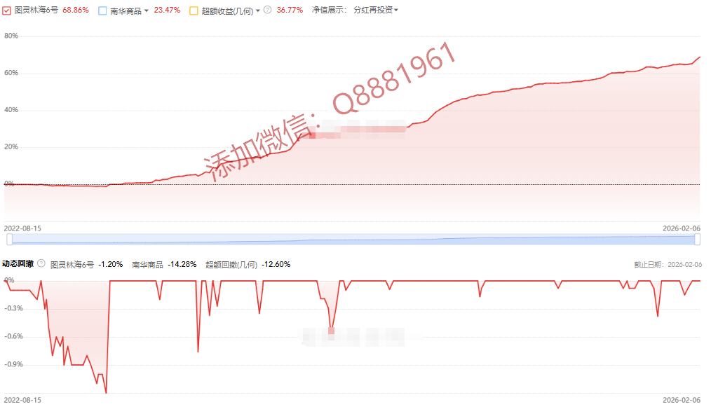 该只私募基金产品为R4中高风险,今年以来的收益为5.88%,成立3.1年以来的收益为80.83%,其中我们来看一下具体数据,成立以来的夏普比为1.42,成立以来的回撤为13.35%,单位净值为1.8083,通过图片,可以观察到这支基金产品的基金规模,截止到2026/2/6的累计净值为1.8083。想追踪最新的基金信息,微信扫描文章下方二维码了解更多信息,加我微信不迷路。