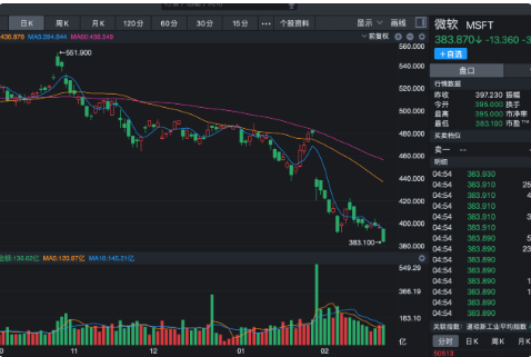 这些科技巨头中,微软跌的最惨,最近股价一路从552跌到383,而且还在破位下跌。