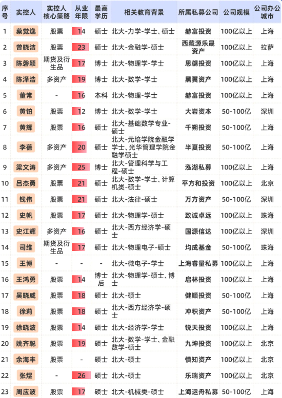 北大系:头部私募实控人在上海办公居多!