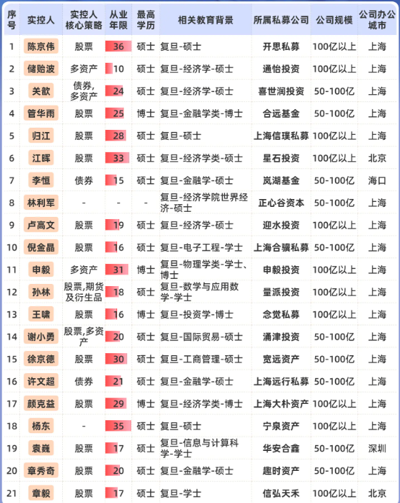 复旦系:头部私募实控人达21位!