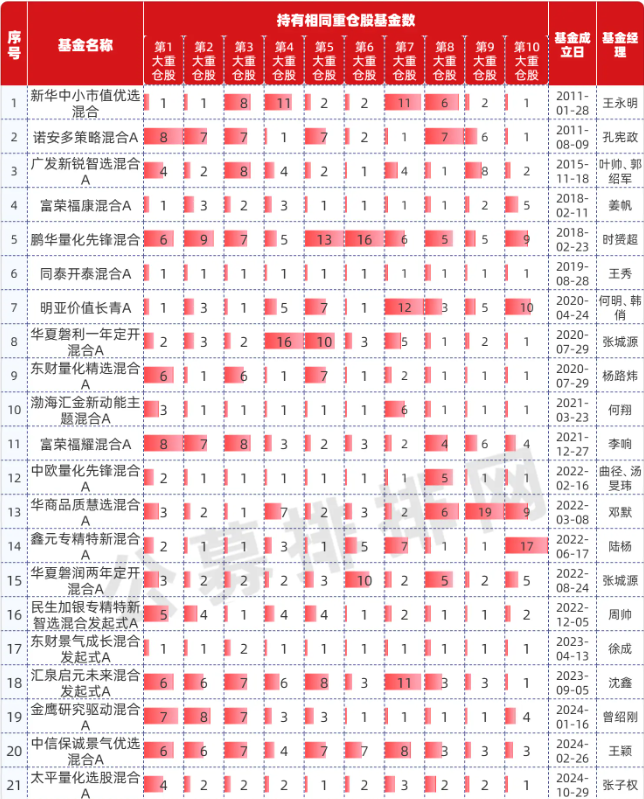 根据公募网站统计,在2025年4季度前十大重仓股的不抱团基金中,灵活配置型基金共有14只、偏股混合型基金共有28只(持有相同重仓股基金数低于20只)。