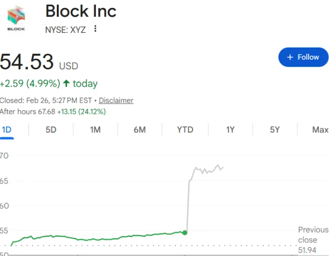公告发布后,Block股价在盘后交易中一度上涨逾24%。优质私募投资群开放,聚焦策略优化、收益分析,详聊微信 Q8881961
