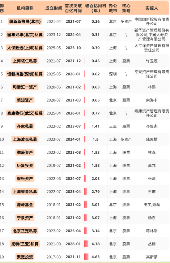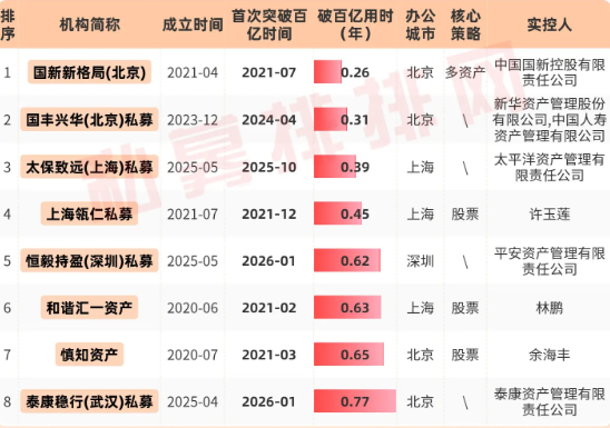接下来,笔者将为大家盘点私募破百亿用时的全名单、2026年破百亿的私募名单以及破百亿用时不足1年的私募名单。