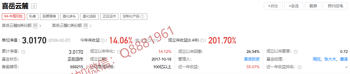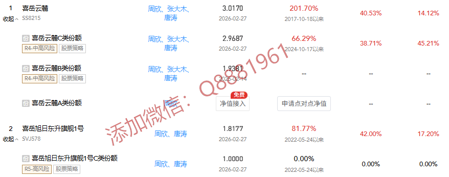 喜岳旗下的私募产品(仅限图片展示内容)年化收益均为正,其中最低收益为1412%,最高收益为45.21%,涵盖多种不同策略的产品,由基金管理人进行管理,累计收益率最高为201.70%,最低为66.29%,只做真实、可落地的私募分析,每周更新市场与产品总结,帮你少踩坑、拿稳收益,加微信:Q8881961。