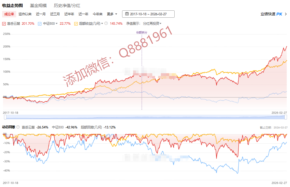 该只私募基金产品为R5高风险,今年以来的收益为13.78%,成立3.8年以来的收益为81.77%,其中我们来看一下具体数据,成立以来的夏普比为0.8,成立以来的回撤为24.95%,单位净值为1.8177,通过图片,可以观察到这支基金产品的基金规模,截止到2026/2/27的累计净值为1.8177。诚邀进百人私募投资群,深度解析私募策略与收益,百万起投可加微信Q8881961详聊。
