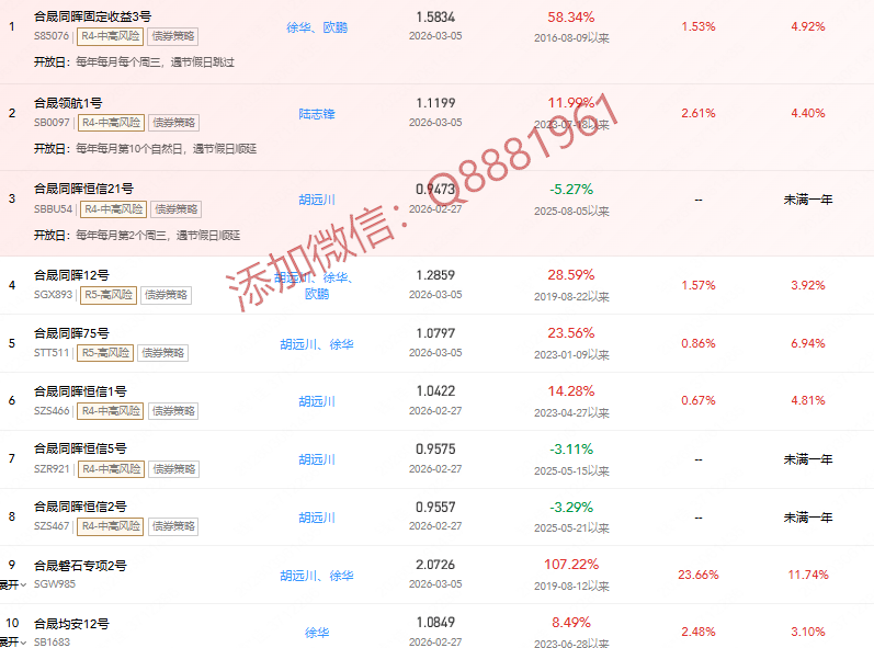 合晟旗下的私募产品(仅限图片展示内容)年化收益有正有负,其中最低收益为3.10%,最高收益为6.94%,涵盖多种不同策略的产品,由基金管理人进行管理,累计收益率最高为107.22%,最低为-5.27%,只做真实、可落地的私募分析,每周更新市场与产品总结,帮你少踩坑、拿稳收益,加微信:Q8881961。