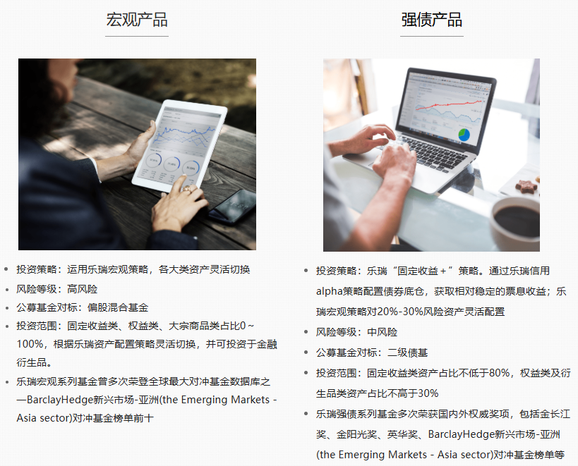 乐瑞资产专注于低风险投资之道,坚持以大类资产配置为核心,通过严谨量化的宏观分析研究,跟踪识别不同类别金融资产的牛熊循环周期,构建适宜风险收益比的投资组合,从而规避单一资产类别风险,获得长期稳定的绝对投资回报。