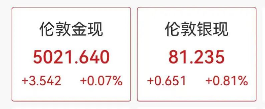 贵金属方面,现货黄金白银持续震荡,截至发稿,现货黄金深V反弹,站上5020美元,此前一度快速跳水跌破5000美元,现货白银涨0.81%报81美元/盎司。