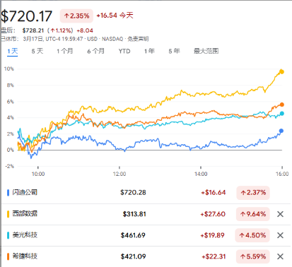周二美股收盘,存储及数据存储板块全线大涨,美光科技市值首次在收盘时突破5000亿美元,正式跻身标普500指数中最具价值的16家公司之列,闪迪、西部数据、希捷等个股亦同步创下新高。