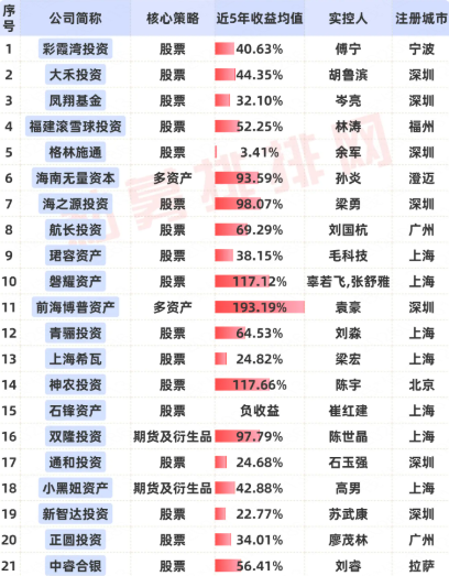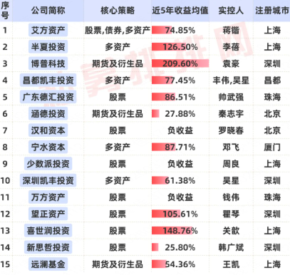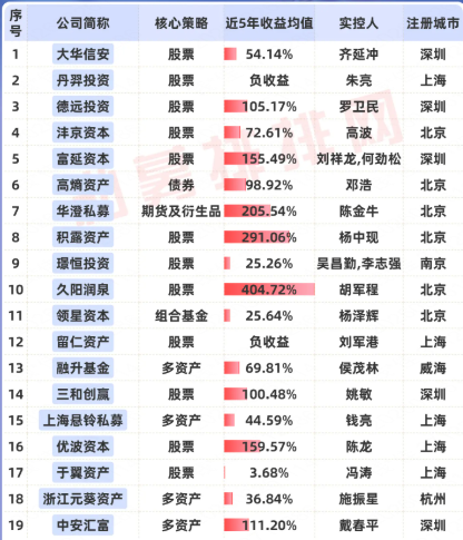 老牌私募近5年业绩一览