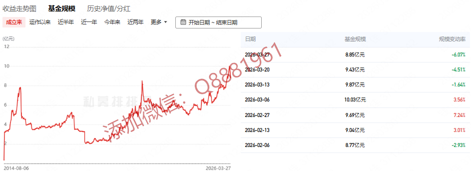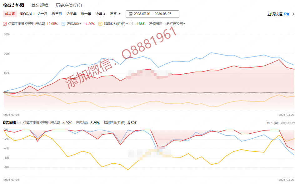 该只私募基金产品为R4中高风险,今年以来的收益为1.18%,成立10.1年以来的收益为303.61%,其中我们来看一下具体数据,成立以来的夏普比为0.83,成立以来的回撤为26.22%,单位净值为3.5190,通过图片,可以观察到这支基金产品的基金规模,截止到2026/3/27的累计净值为3.5190。诚邀进百人私募投资群,深度解析私募策略与收益,百万起投可加微信Q8881961详聊。