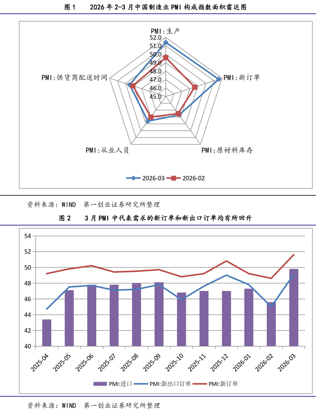 一、3月制造业PMI中供需双方均有明显改善