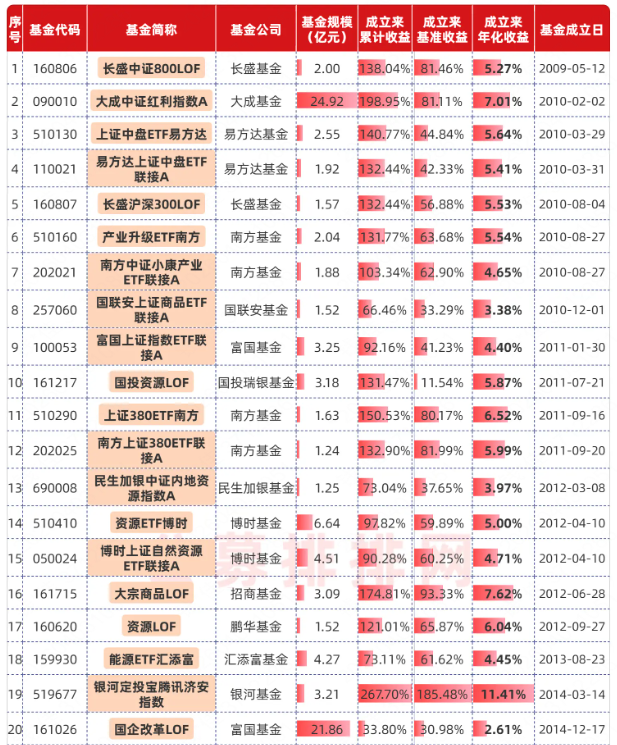 (按基金成立日期由早到晚排序)