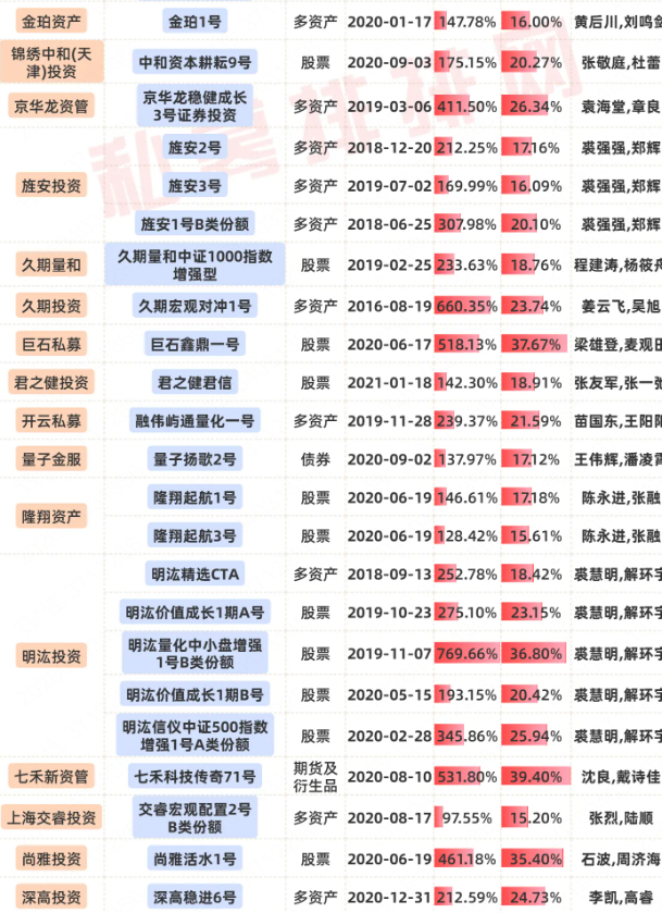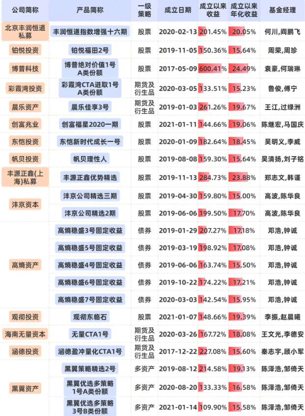 高熵、黑翼、金珀等私募旗下均有产品在列