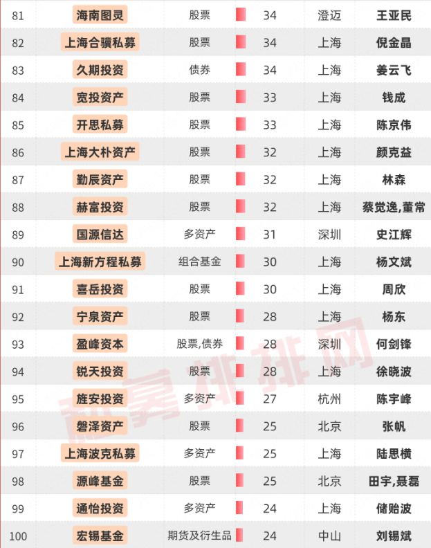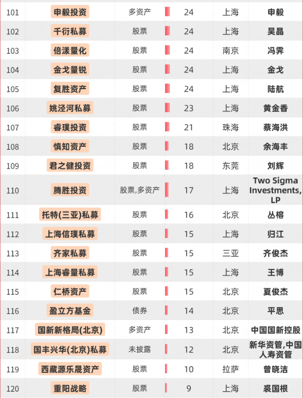 百亿私募最新名单(126家)