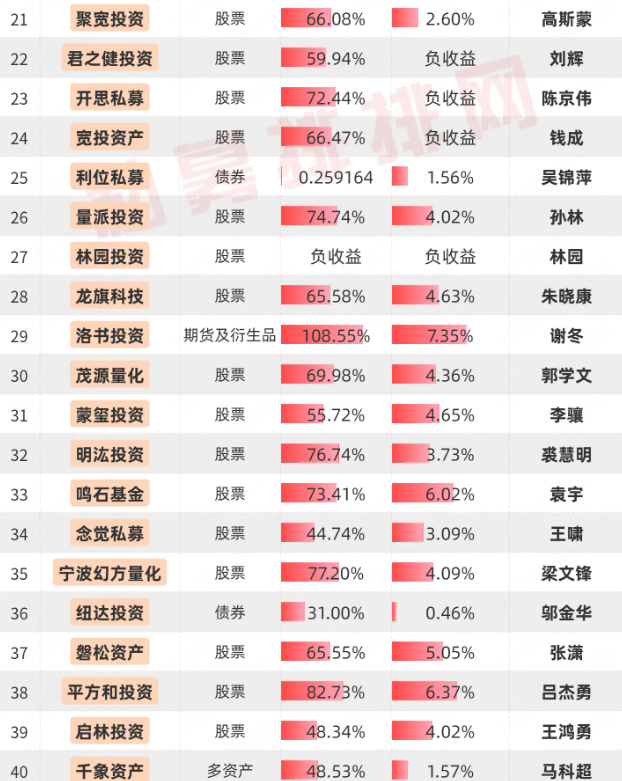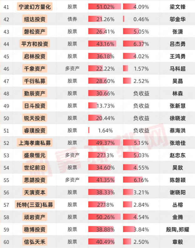 复胜资产等42家百亿私募有近5年业绩展示