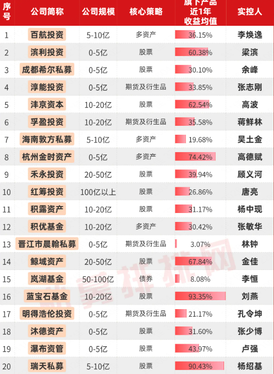 全部产品创新高的百亿私募仅红筹投资1家在列。红筹投资是一家股票策略私募,有5只产品有近一年业绩展示,近一年收益均值约为26.86%。